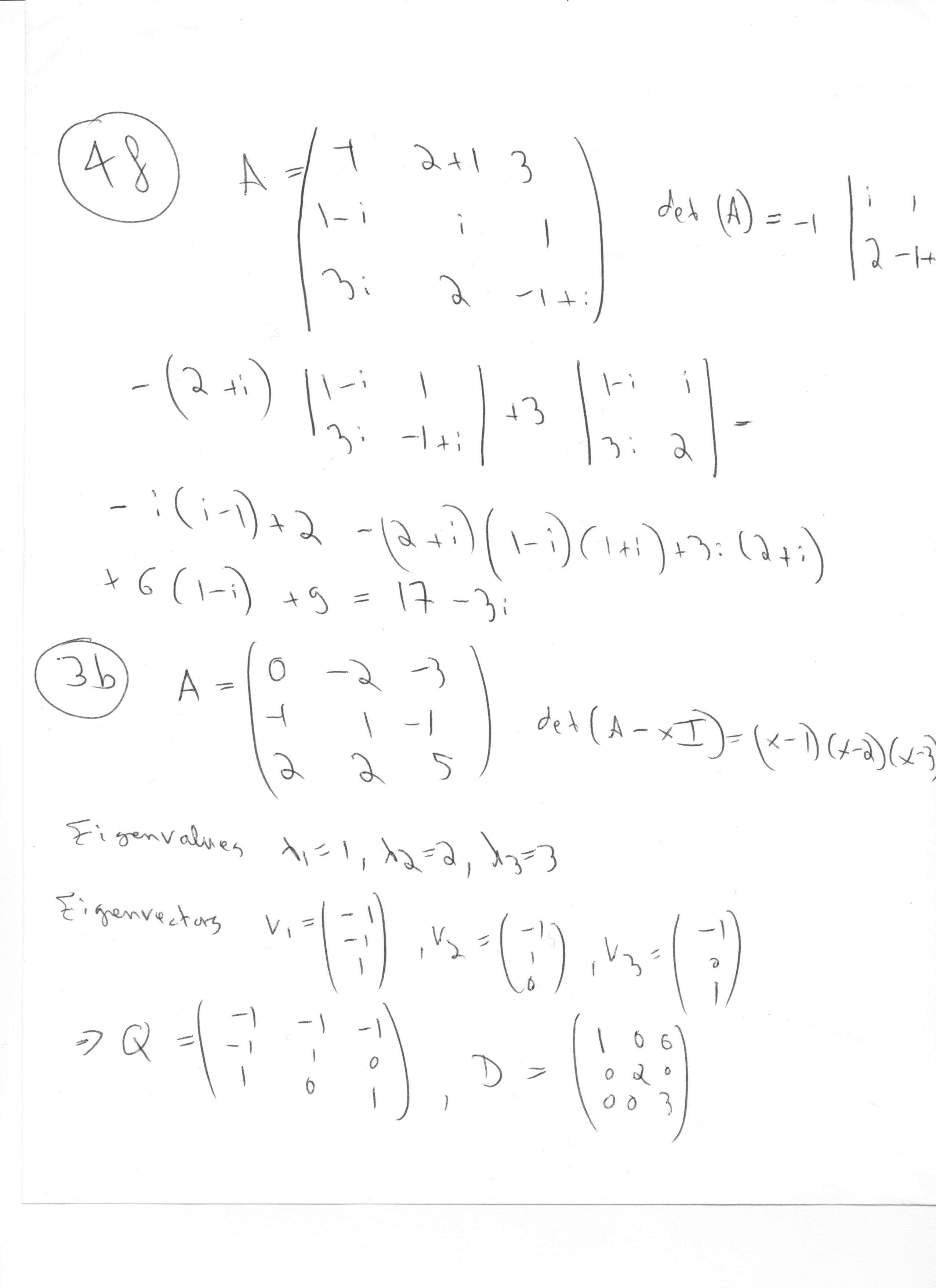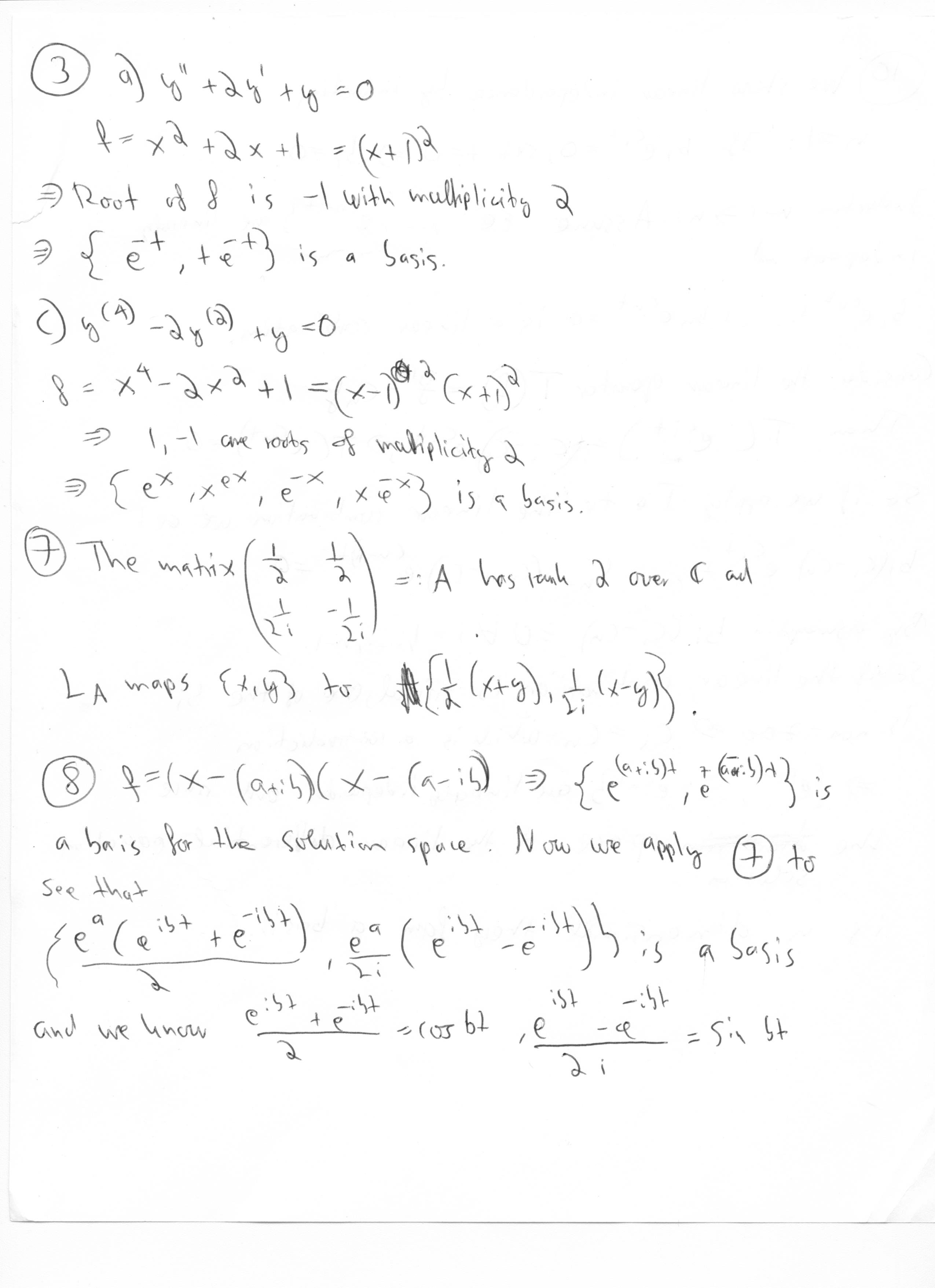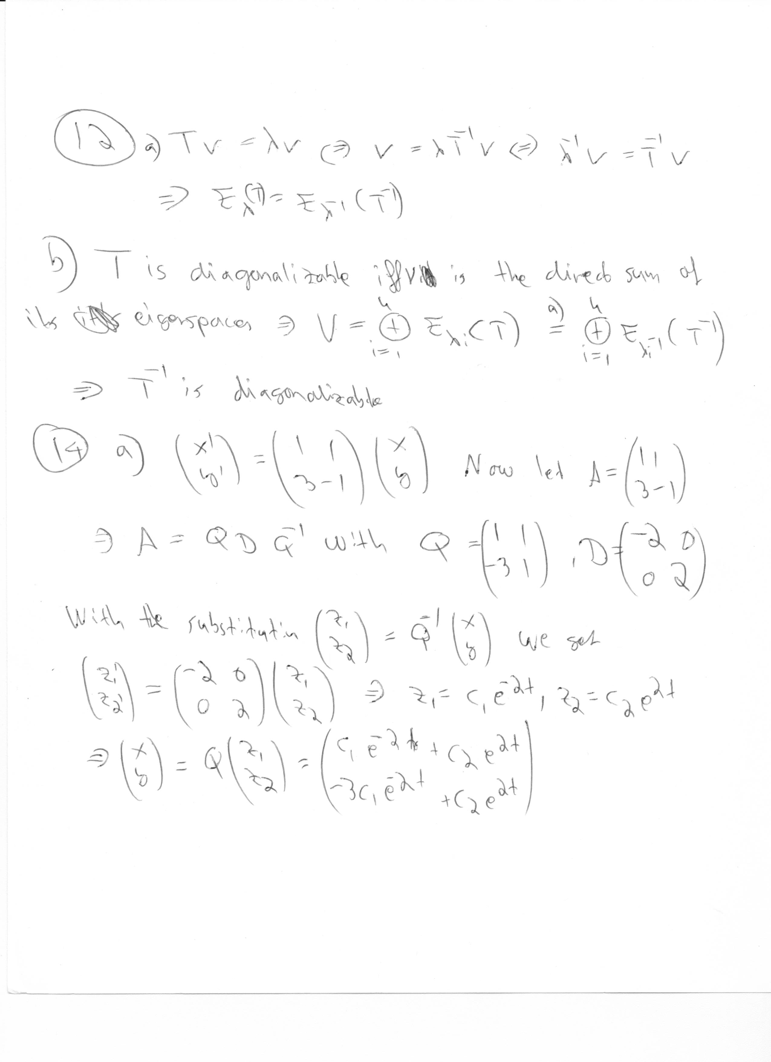 Midterm II (4/28, in class) - Covers all material in sections 3.3, 3.4, 4.1-4.4, 5.1, 5.2, 5.4, 7.1, 7.2. Concerning sections 7.1 and 7.2, you will at most be asked to compute the Jordan form of a matrix and perhaps use it in an application. The exam, and its solutions.