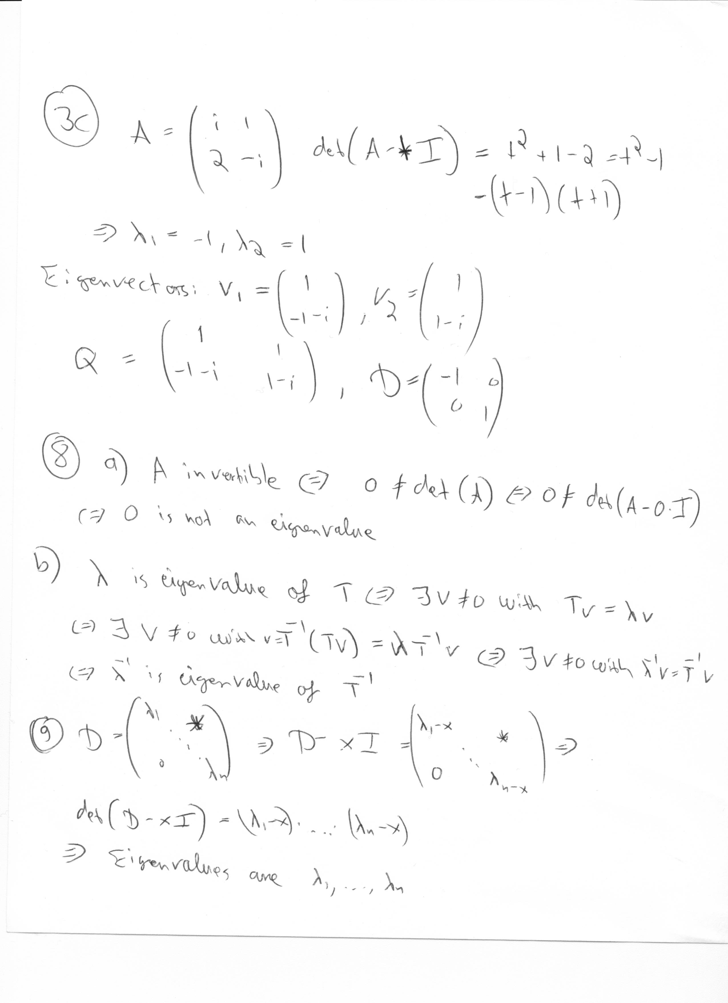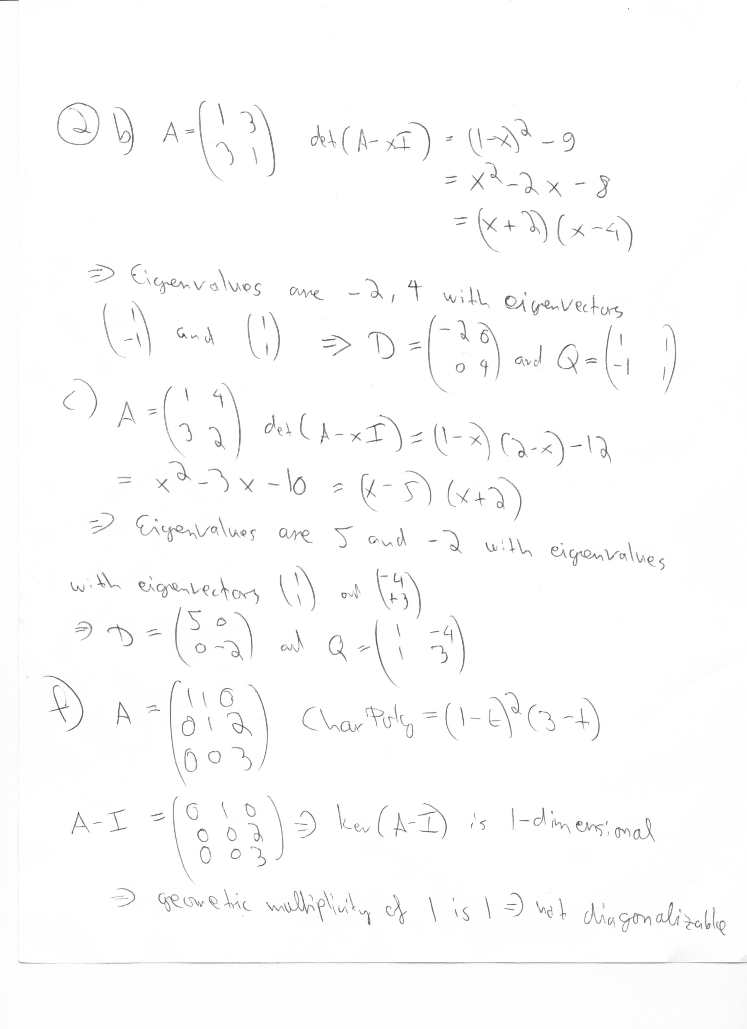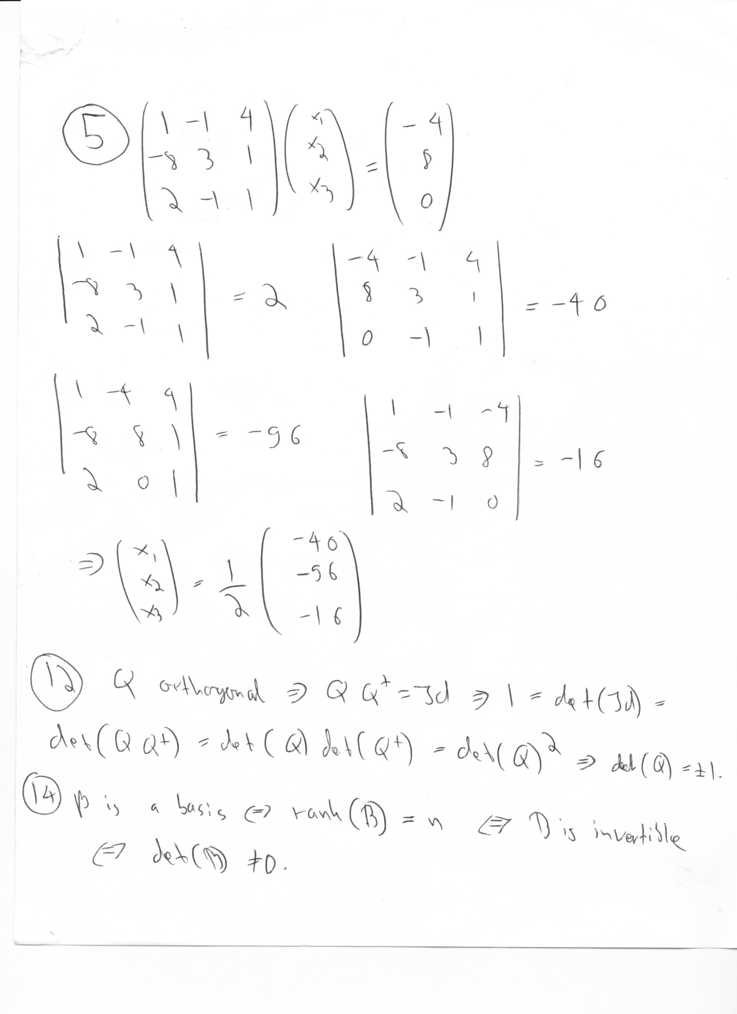 Midterm II (4/28, in class) - Covers all material in sections 3.3, 3.4, 4.1-4.4, 5.1, 5.2, 5.4, 7.1, 7.2. Concerning sections 7.1 and 7.2, you will at most be asked to compute the Jordan form of a matrix and perhaps use it in an application. The exam, and its solutions.