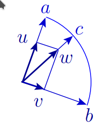Let us prove that \((a\cplus b)\cplus c=a\cplus (b\cplus c)\) in each of these cases. In the framework of the prove in the case when \(x\cplus y\) is an arc (i.e., \(|x|=|y|\) and \(x+y\ne 0\)), let us denote this arc by \(\mathop \frown {(xy)}\).