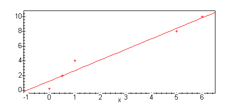 fit[leastsquare[[x,y]]]([[ pts[i][1] $ i=1..5 ], [pts[i][2] $i=1..5]]);