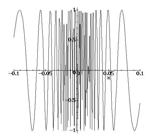 For example, the function y=sin(1/x) does not have a limit as x nears 0; it wiggles more and more, oscillating between +1 and -1. Just asking Maple to draw its graph for -0.1 < x < 0.1 gives a rather unsatisfactory result: