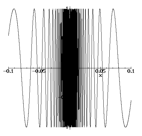 For example, the function y=sin(1/x) does not have a limit as x nears 0; it wiggles more and more, oscillating between +1 and -1. Just asking Maple to draw its graph for -0.1 < x < 0.1 gives a rather unsatisfactory result: